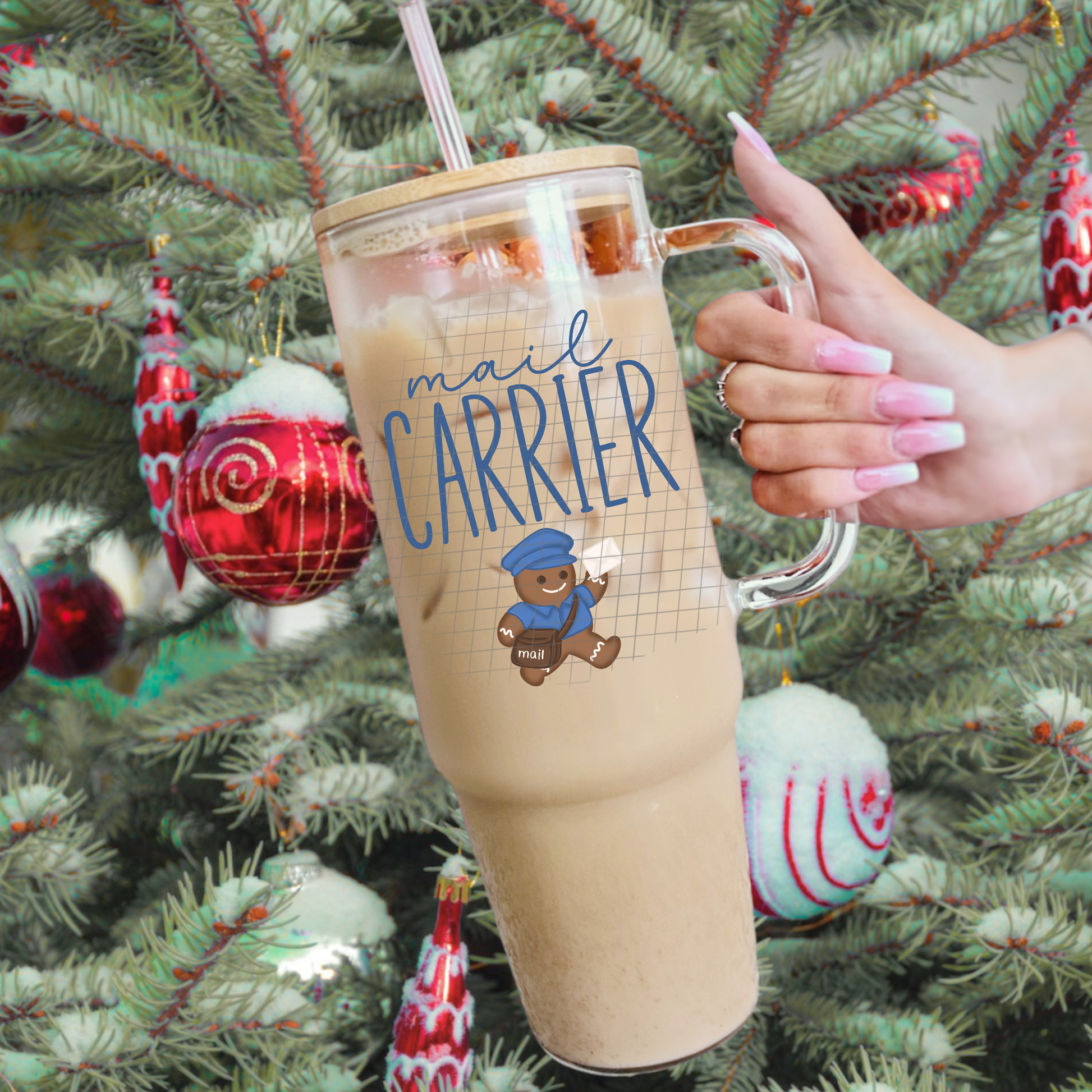Blue mail carrier gingerbread UV DTF