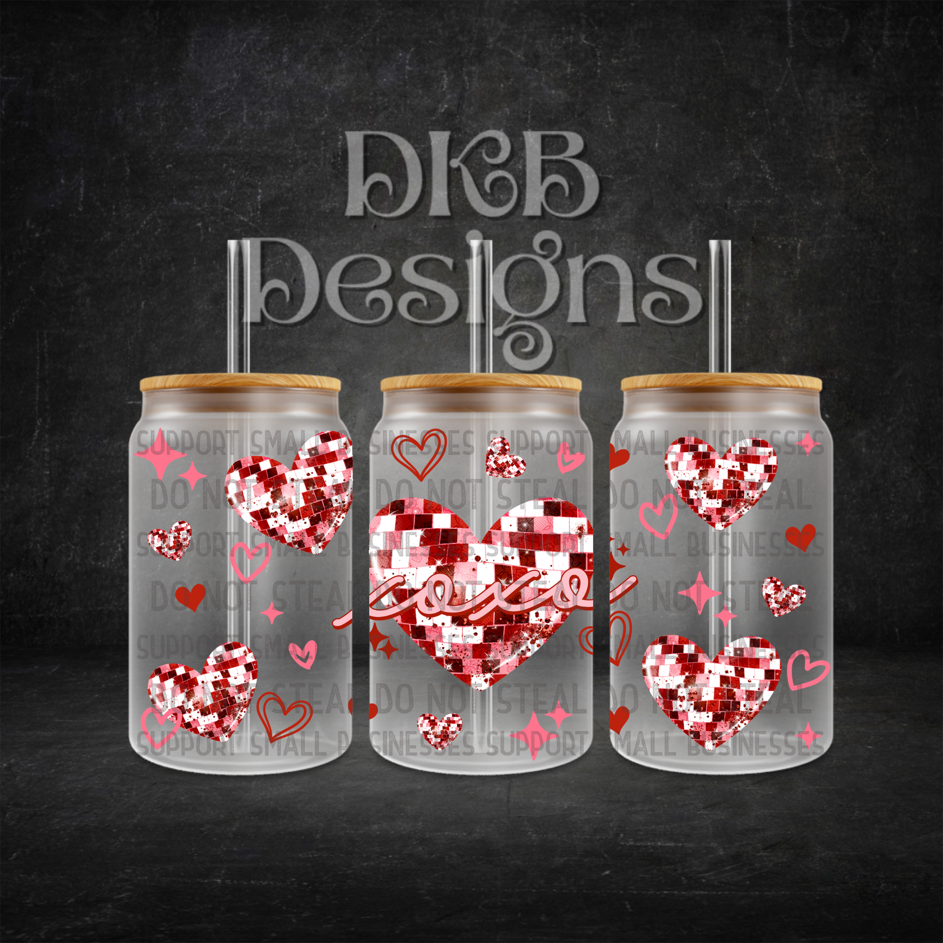 Disco heart 16oz glass can UV DTF