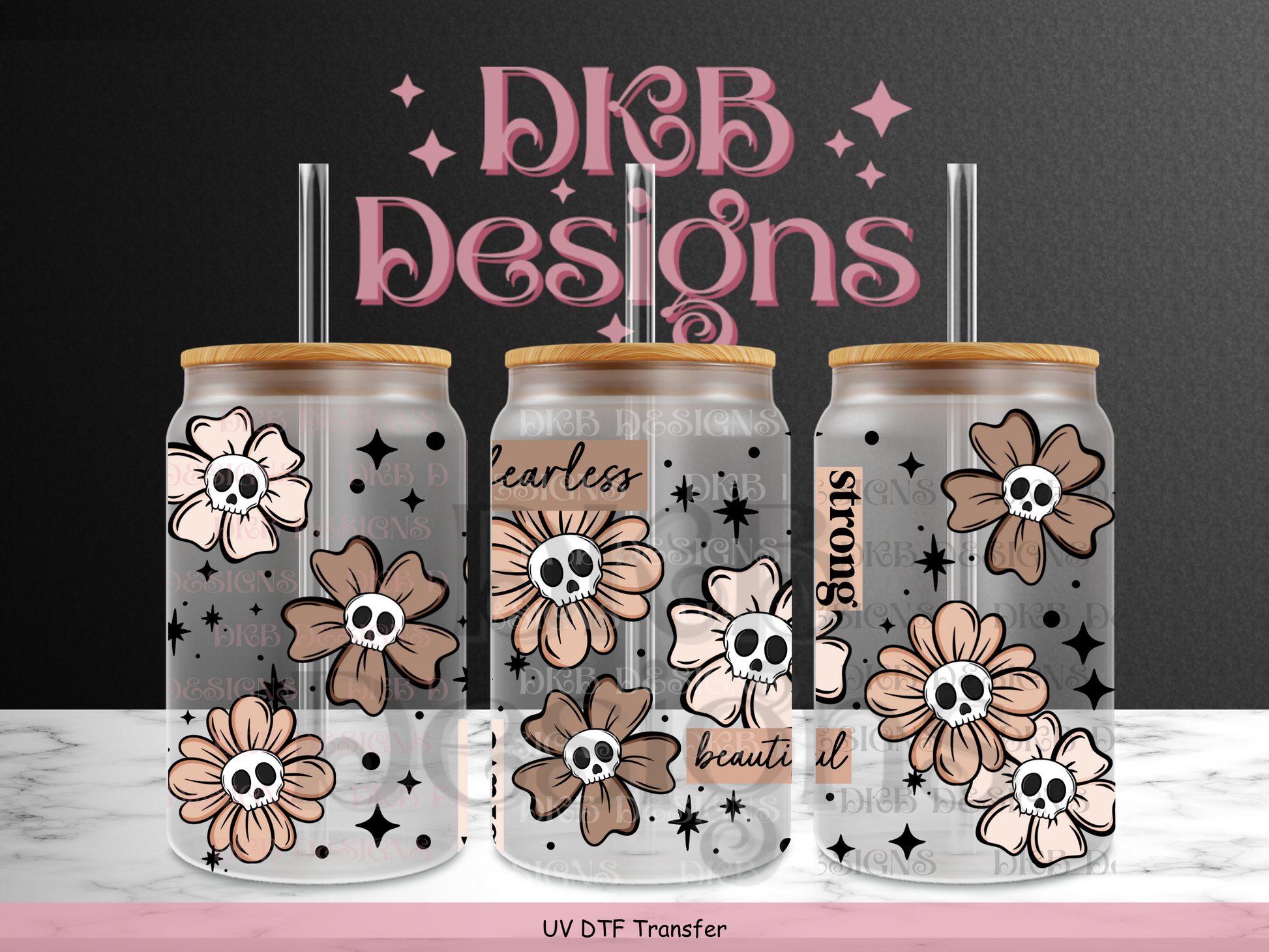 Positive florals skellie 16oz glass can UV DTF