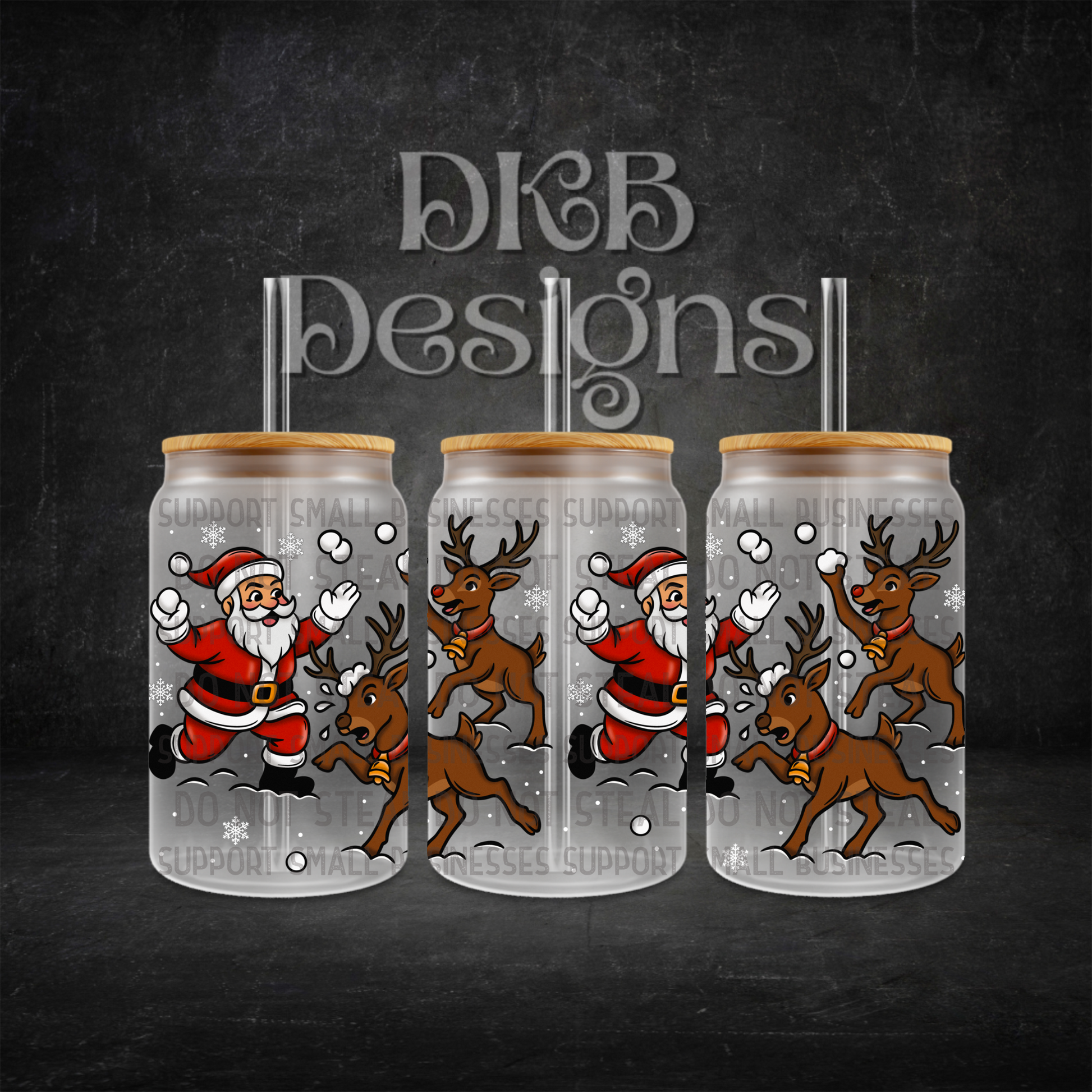 Snowball fight white 16oz glass can UV DTF