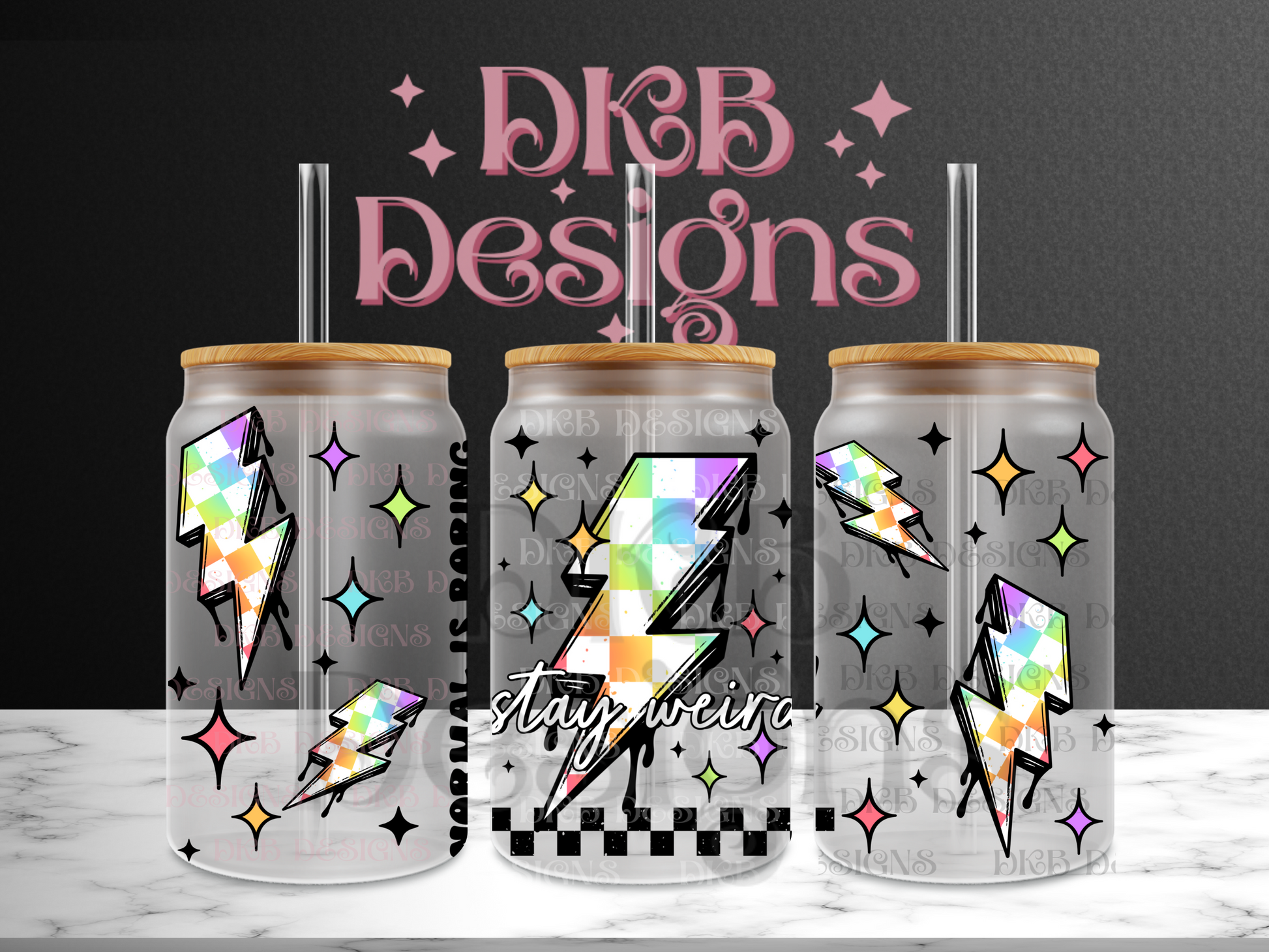 Stay weird black 16oz glass can UV DTF